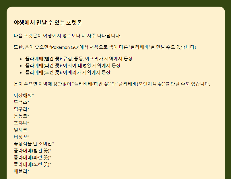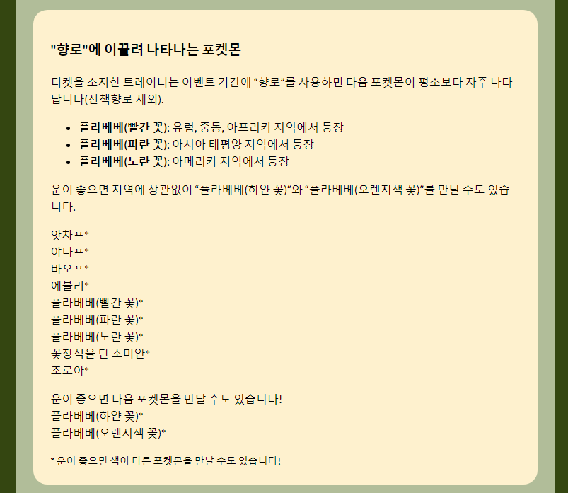 - 이벤트에서 새로운 의상을 입은 포켓몬이 등장 : 꽃장식을 단 소미안, 꽃장식을 단 엘풍