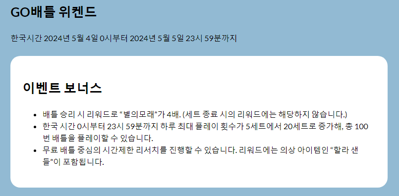 - 한국시간 2024년 5월 4일 0시부터 2024년 5월 5일 23시 59분까지
